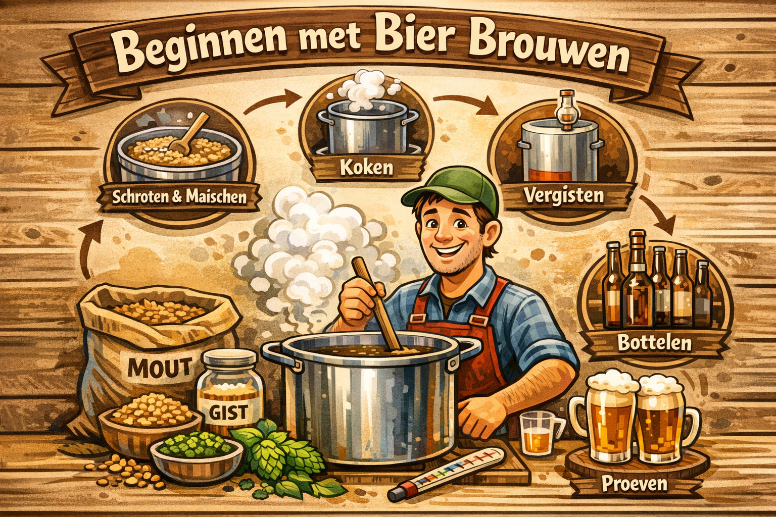 Wil je beginnen met bier brouwen? Dan ben je hier op de juiste plek. Bier brouwen is een prachtig proces waarbij je van eenvoudige ingrediënten zoals water, mout, hop en gist je eigen bier maakt. Op deze pagina ontdek je hoe je kunt starten met bier brouwen en wat je daarvoor nodig hebt.