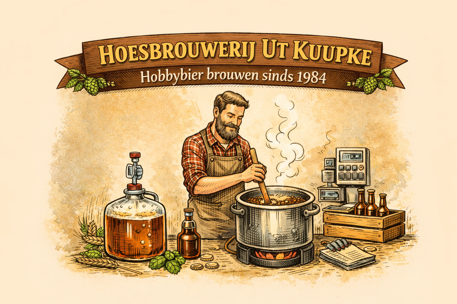 Hoesbrouwerij Ut Kuupke is sinds 1984 actief als hobbybrouwerij. Wat begon als experiment groeide uit tot een langdurige passie voor traditioneel bier brouwen. Lees ook het verhaal over het begin van Ut Kuupke of ontdek meer over de ingrediënten van bier.